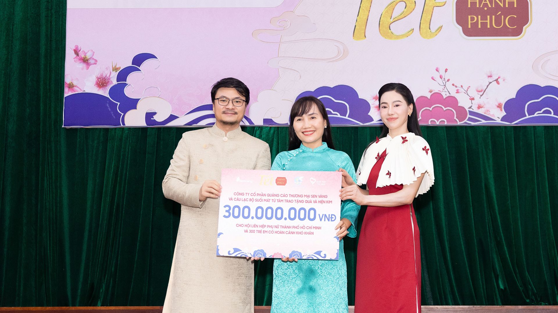 Bên cạnh đó, Chủ tịch Câu lạc bộ Suối Mát Từ Tâm – Thạc sĩ Phạm Kim Dung cùng Đạo diễn Hoàng Nhật Nam – Đại diện Công ty Sen Vàng đã thay mặt chương trình trao bảng từ thiện trị giá 300 triệu đồng đến Hội Liên hiệp Phụ nữ TP HCM. Những phần quà này chính là lời tri ân, sự sẻ chia dành tặng những hoàn cảnh còn khó khăn, đặc biệt là trẻ em – thế hệ tương lai của đất nước.