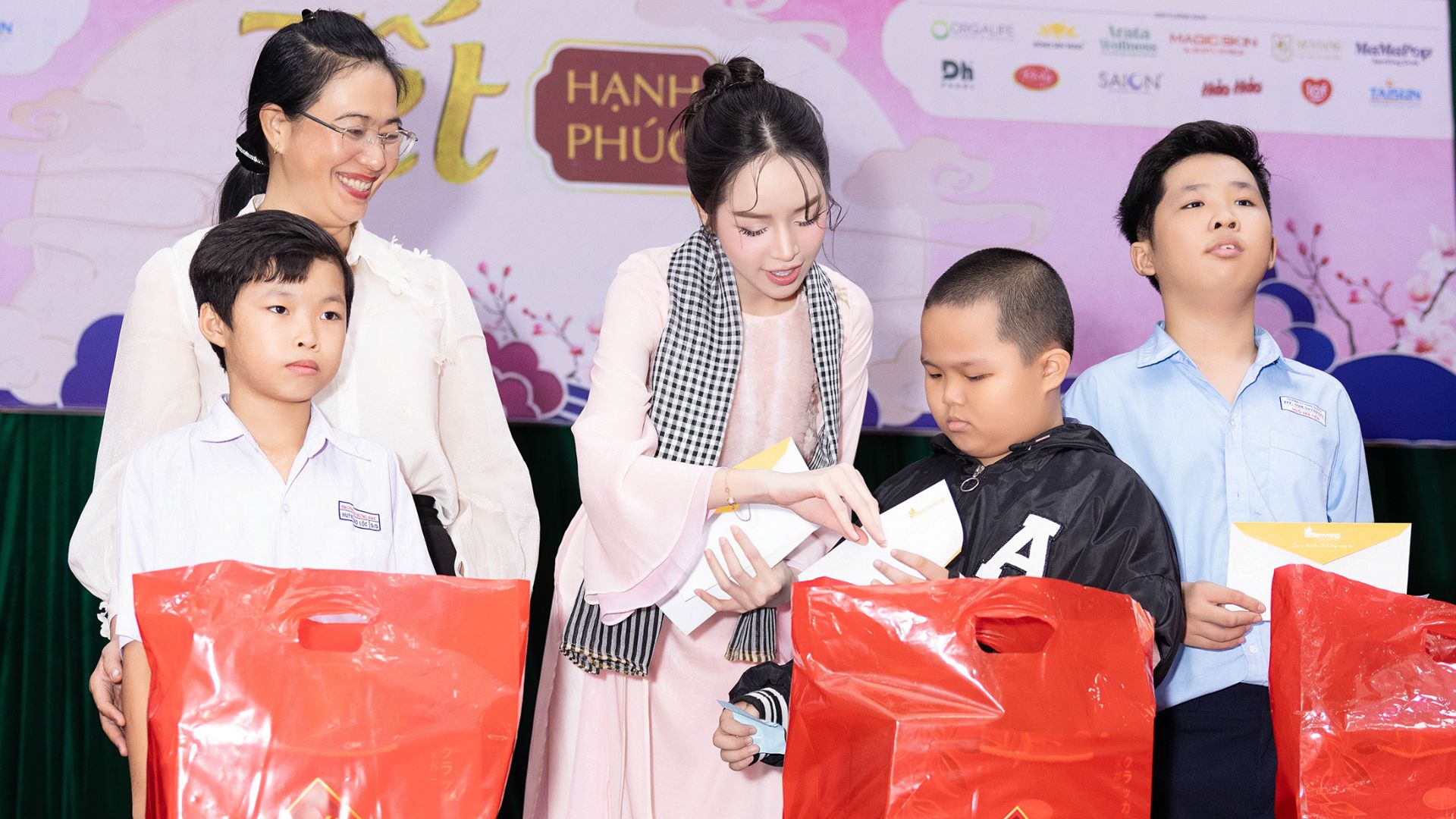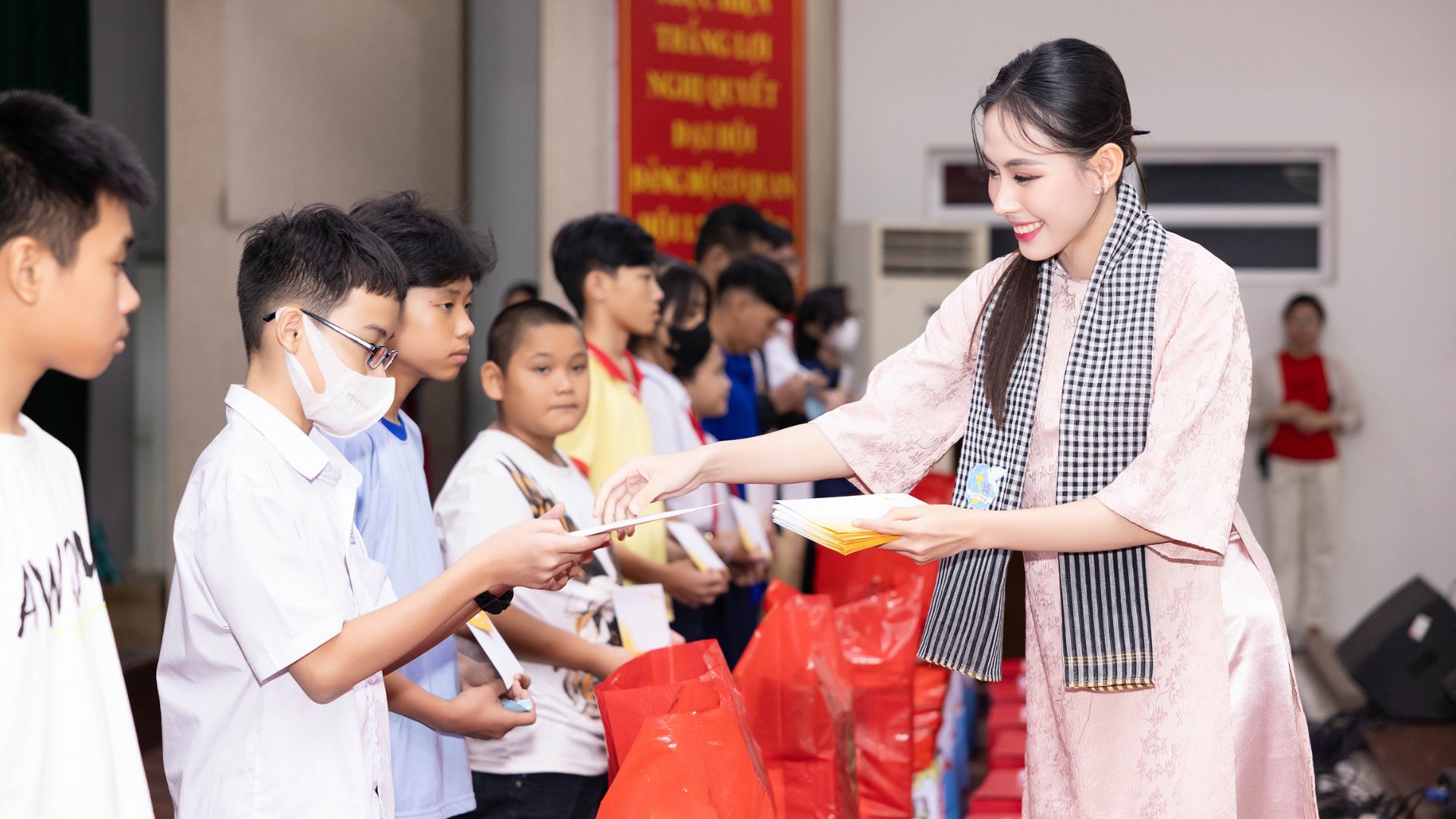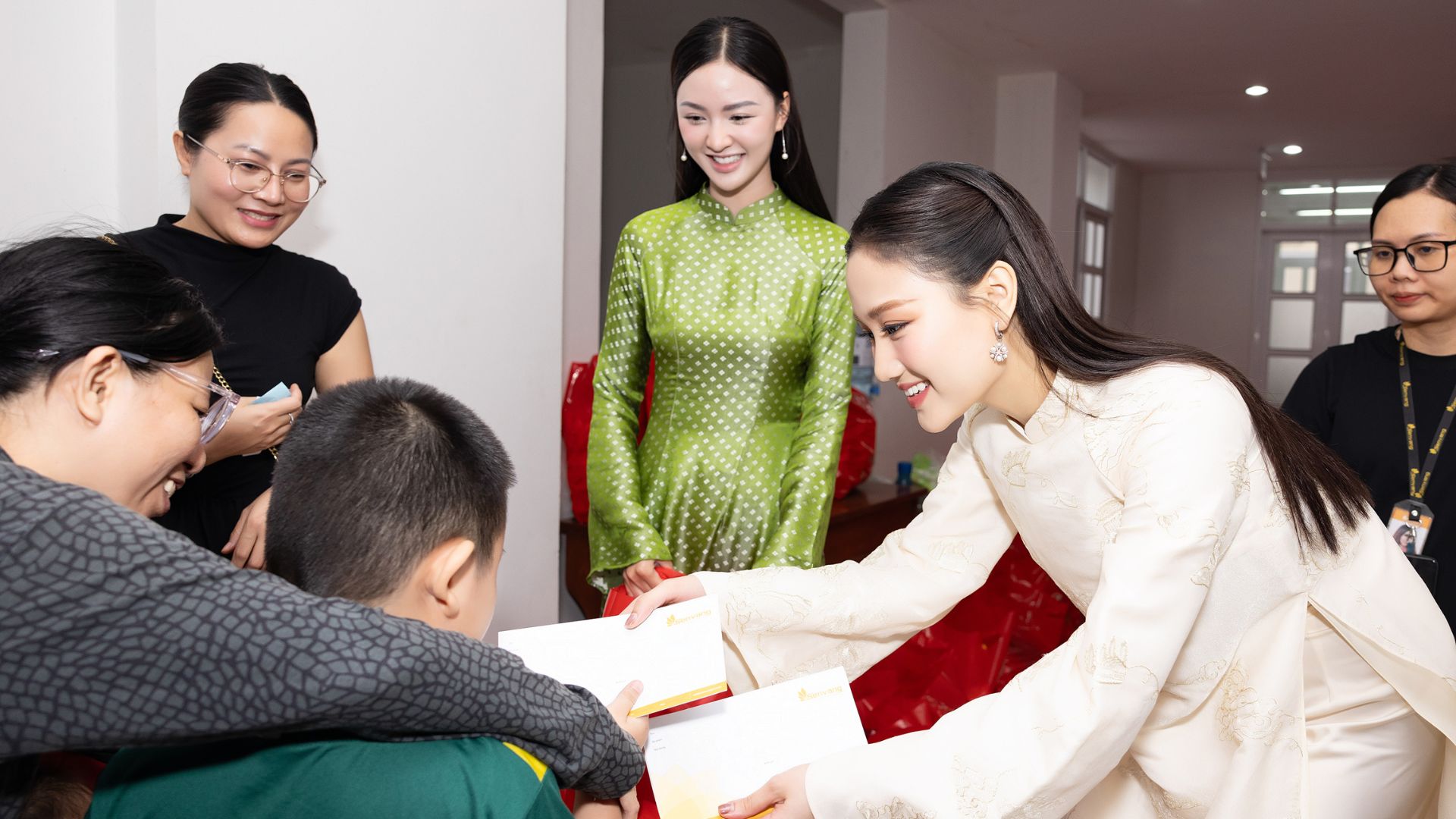 Các Hoa Á hậu đã tận tay trao những phần quà Tết đến các em nhỏ giàu nghị lực, luôn giữ vững niềm tin trong cuộc sống và tinh thần vươn lên trong học tập, rèn luyện.