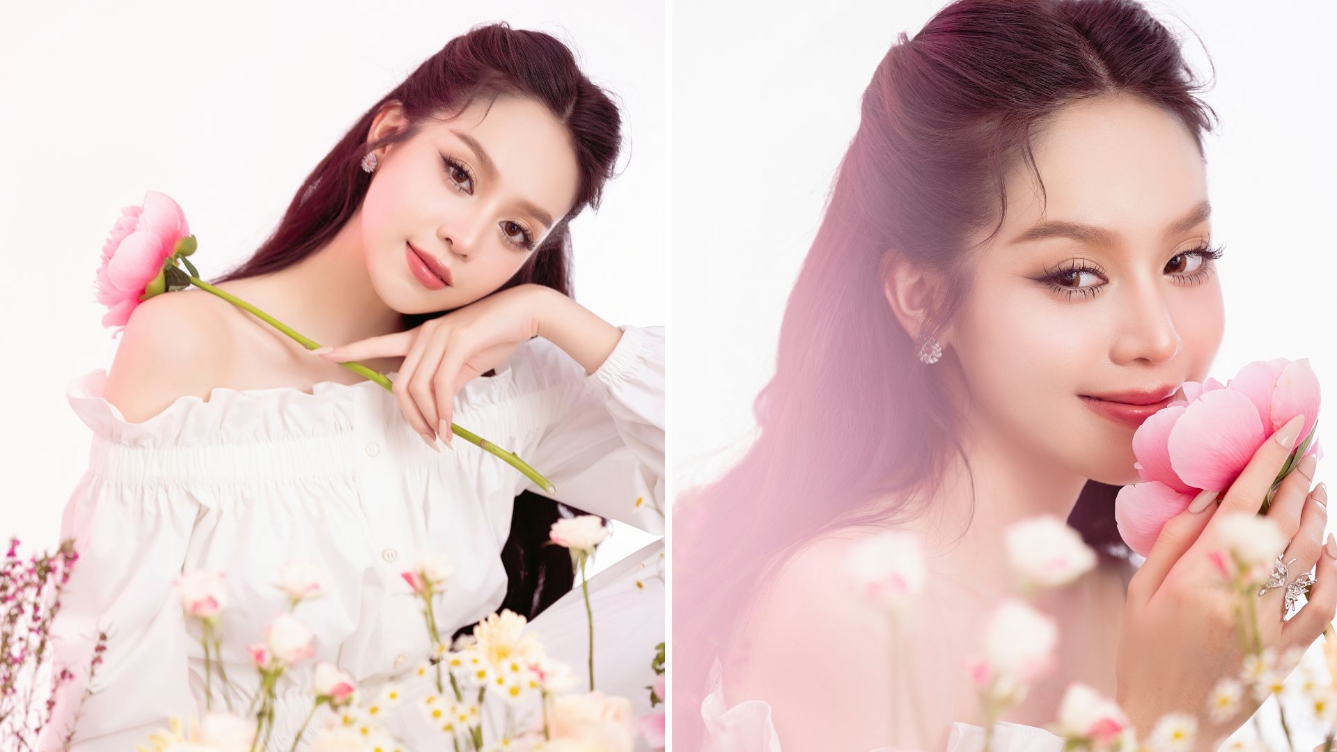 Trong bộ ảnh sinh nhật, Thanh Thủy mang trên mình dải sash Miss International Vietnam 2024 cùng chiếc vương miện Hoa hậu Việt Nam cao quý. Thanh Thủy lựa chọn những trang phục dạ hội nhẹ nhàng, thanh lịch, với gam màu pastel nhẹ nhàng như trắng, hồng đến từ nhà thiết kế Lê Thanh Hoà. Đây cũng là những màu sắc chủ đạo lấy cảm hứng từ logo cuộc thi Miss International. Các chi tiết cắt xẻ tinh tế giúp khoe khéo đường cong cơ thể quyến rũ, đáng chú ý đôi chân dài trứ danh cùng bờ vai “móc áo” của cô nàng.