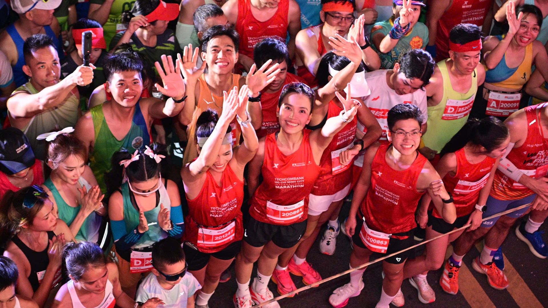 Ái Phương cùng các vận động viên hào hứng trước giờ chạy