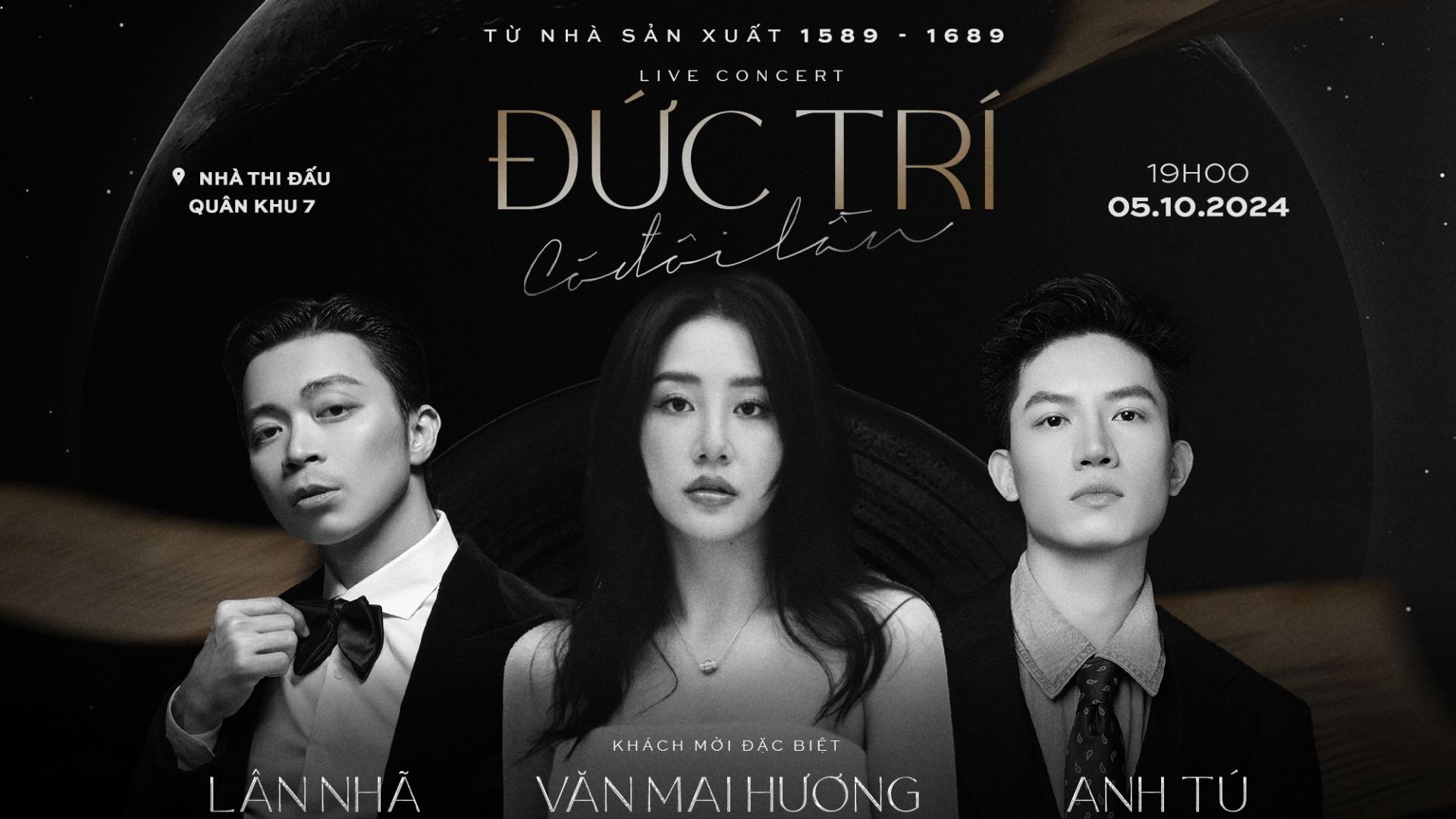 Có thể xem tới thời điểm hiện tại, Đức Trí là một trong những nhạc sĩ thành công nhất của nền âm nhạc Việt Nam hiện đại. Bén duyên kết hợp cùng nhau trong việc góp phần tạo nên tiếng vang cho 2 concert 1589 và 1689. Nhạc sỹ Đức Trí cùng ekip Aura và Interstellar giới thiệu đến công chúng dự án âm nhạc mới nhất của mình: LIVE CONCERT ĐỨC TRÍ 2024.