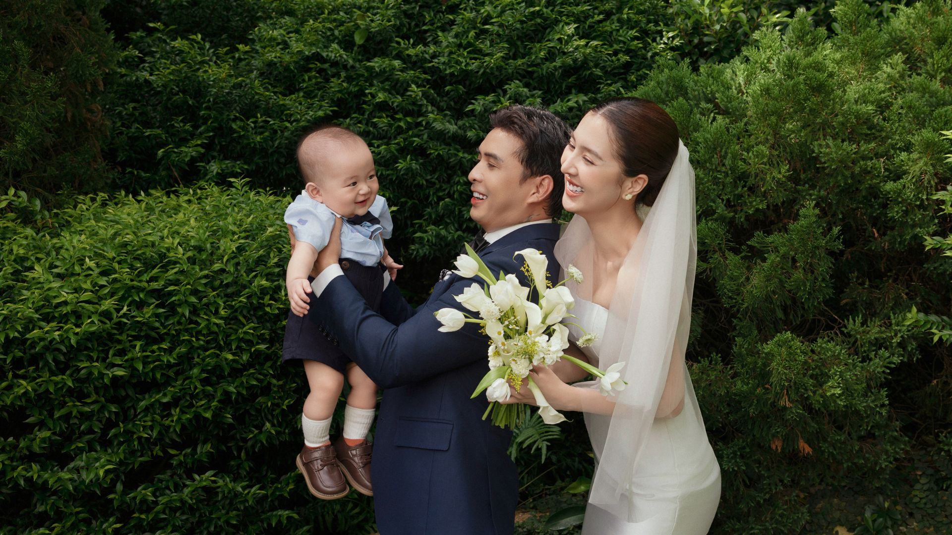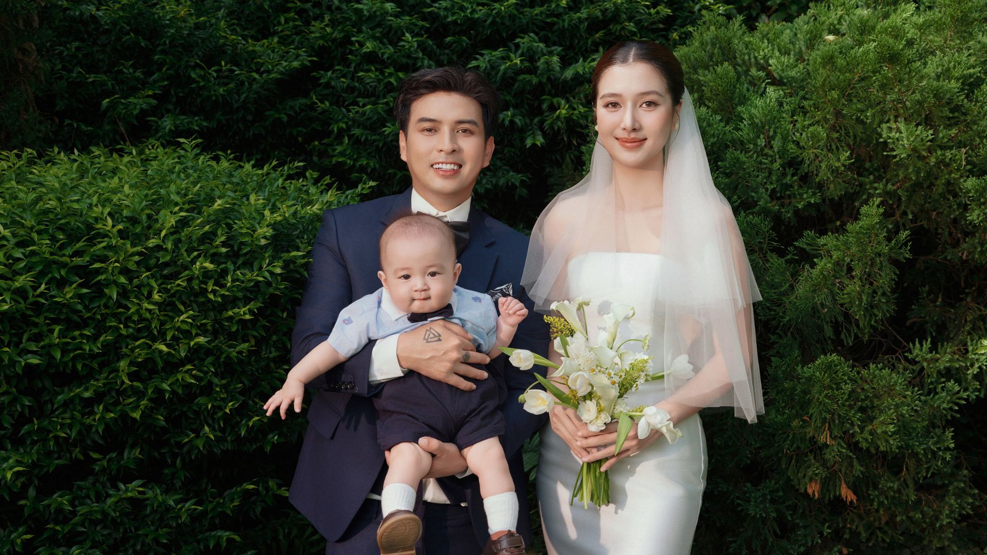 Hồ Quang Hiếu và Tuệ Như hạnh phúc bên con trai trong ảnh cưới