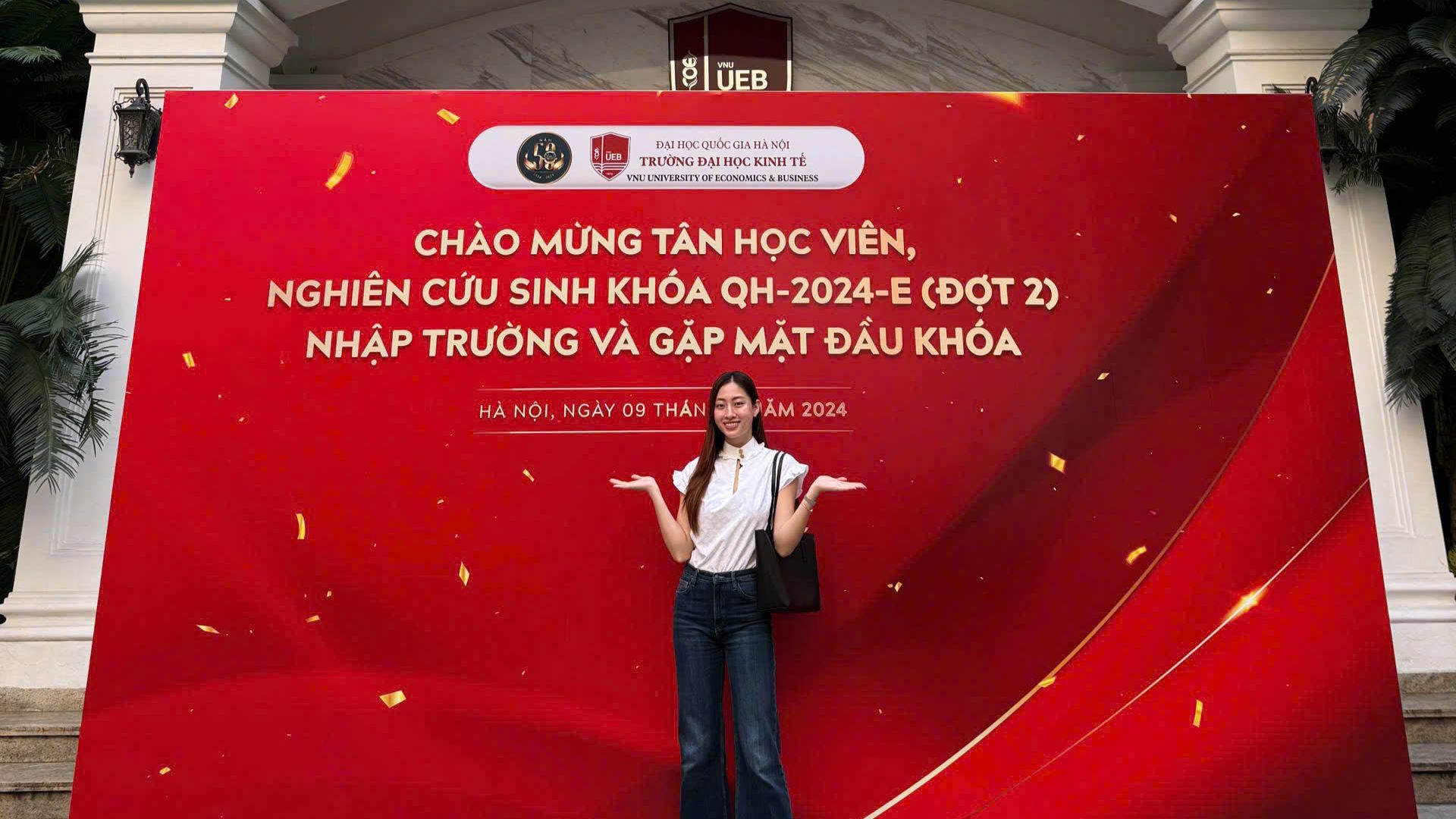 Chương trình Tiến sĩ Kinh tế Quốc tế tại ĐHQGHN, một trong những chương trình có yêu cầu tuyển chọn khắt khe, đã đón nhận Linh vào danh sách học viên nhờ thành tích học tập đáng nể cùng hồ sơ khoa học phong phú. Cụ thể, Thời lượng môn học theo quy định sẽ có khoảng đâu đó 20-30% học online, thời gian còn lại hoa hậu sẽ học trực tiếp tại trường.