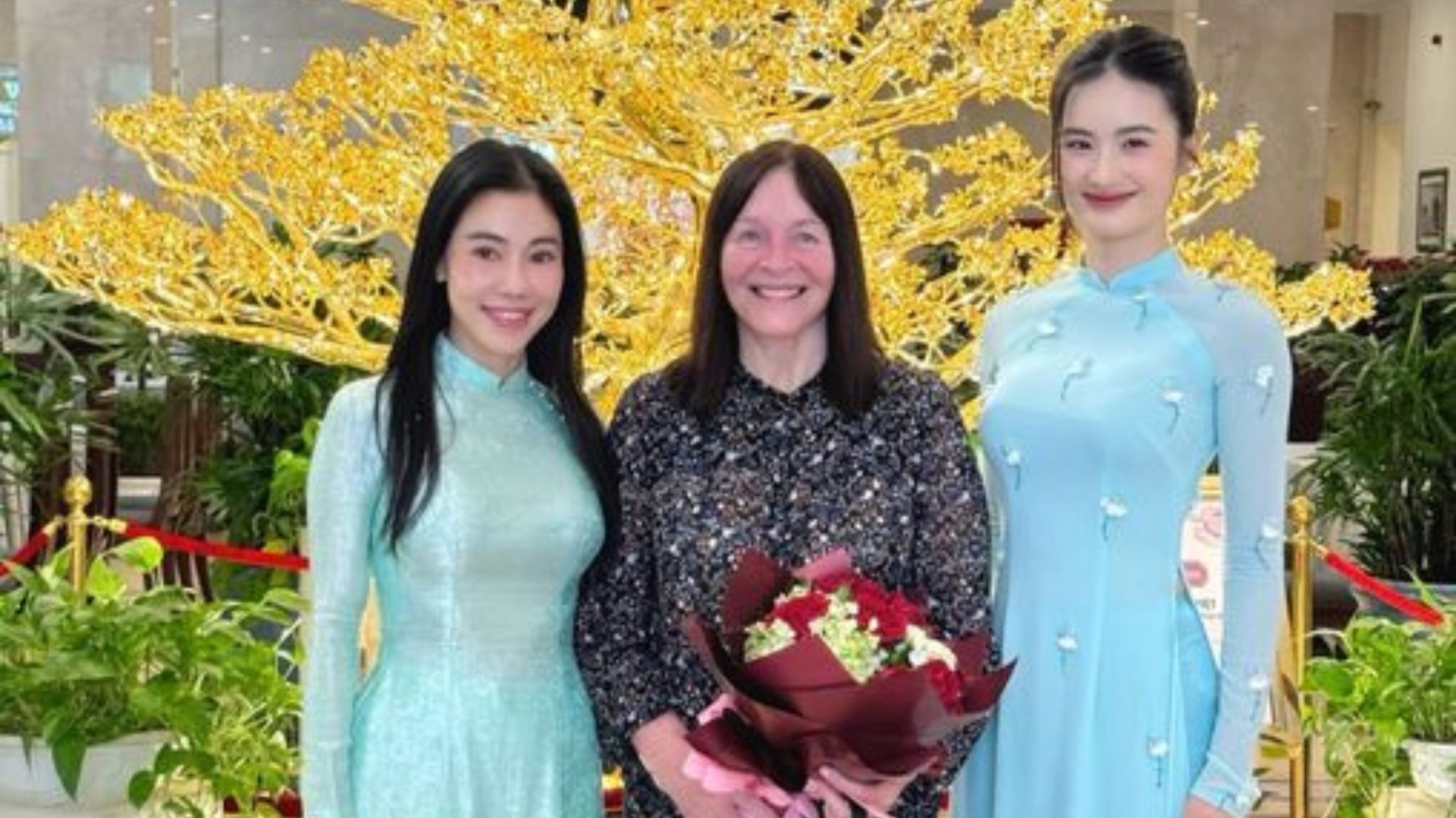 Hoa hậu Ý Nhi diện áo dài nền nã đón chủ tịch Miss World