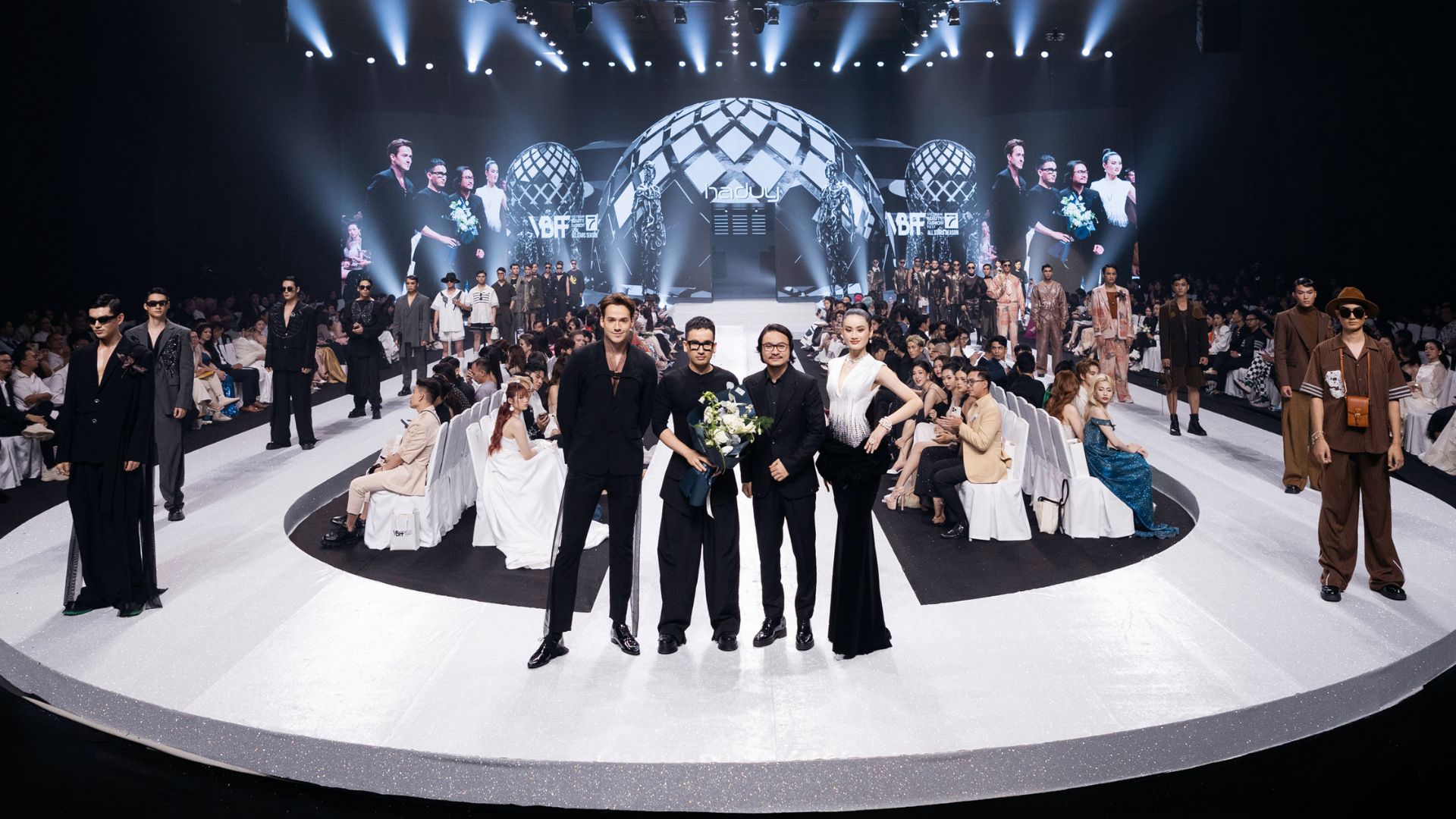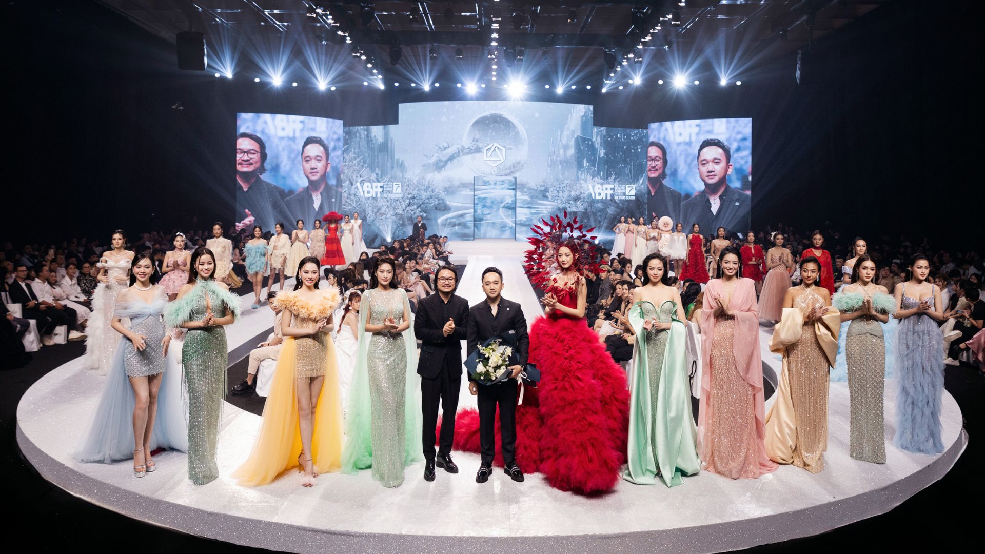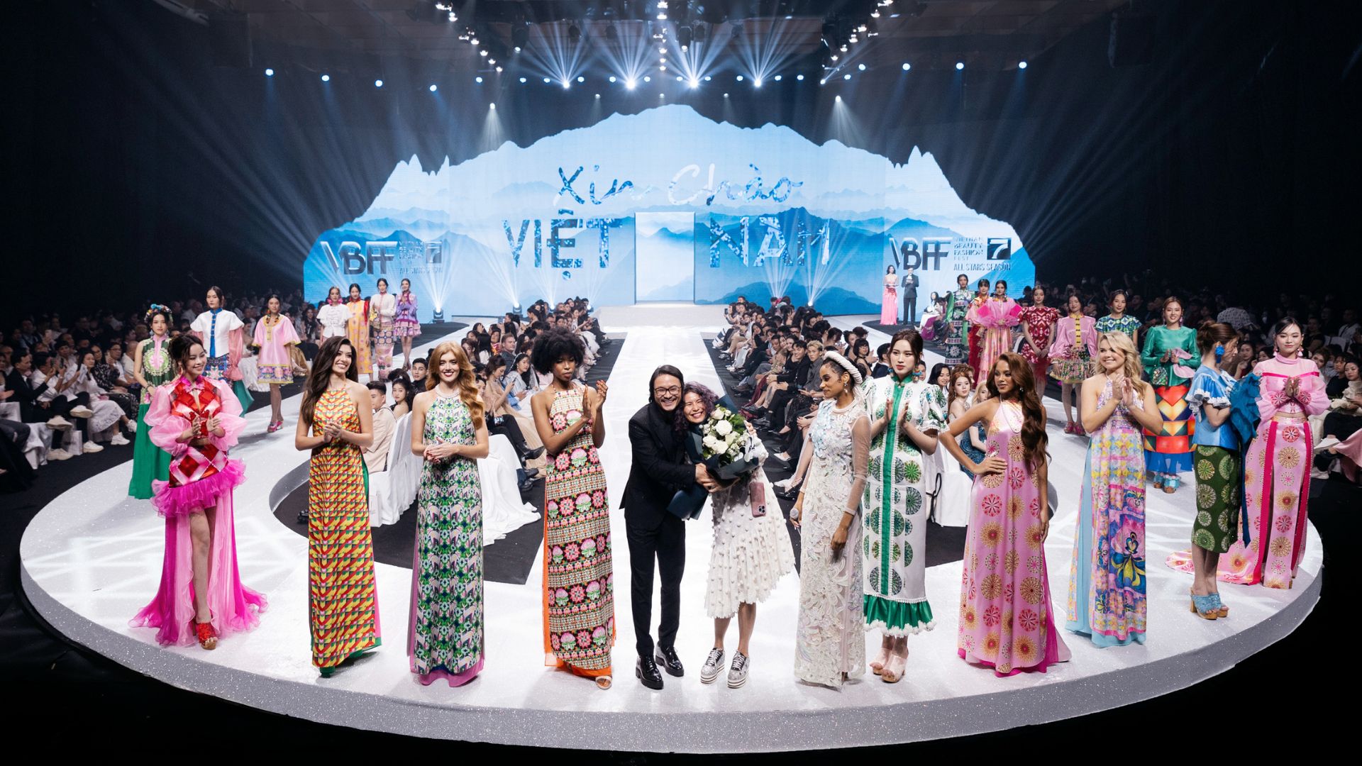 “VBFF Allstar Beauty with a Purpose. Tối nay, tôi muốn cho quý vị thấy tài năng đặc biệt của nhà thiết kế Việt Nam thông qua bốn bộ sưu tập của Lê Ngọc Lâm, Thủy Nguyễn, Hà Duy và Lê Thanh Hòa. Từ tận đáy lòng, tôi muốn gửi lời cảm ơn đến những khách quý, nhà tài trợ luôn dành sự hỗ trợ cho chúng tôi. Nếu không có quý vị, chúng tôi sẽ không có show diễn tuyệt vời như tối nay. Và gửi đến Tổ chức Miss World, chúng tôi được truyền cảm hứng rất nhiều bởi thông điệp Sắc đẹp vì mục đích cao cả mà quý vị đề ra. Và tôi tin rằng, sắc đẹp không chỉ đến từ gương mặt, đó còn là vẻ đẹp tâm hồn, sự sẻ chia. Mong các bạn có đêm thưởng thức thời trang tuyệt vời và ý nghĩa”, đạo diễn Hoàng Nhật Nam chia sẻ.