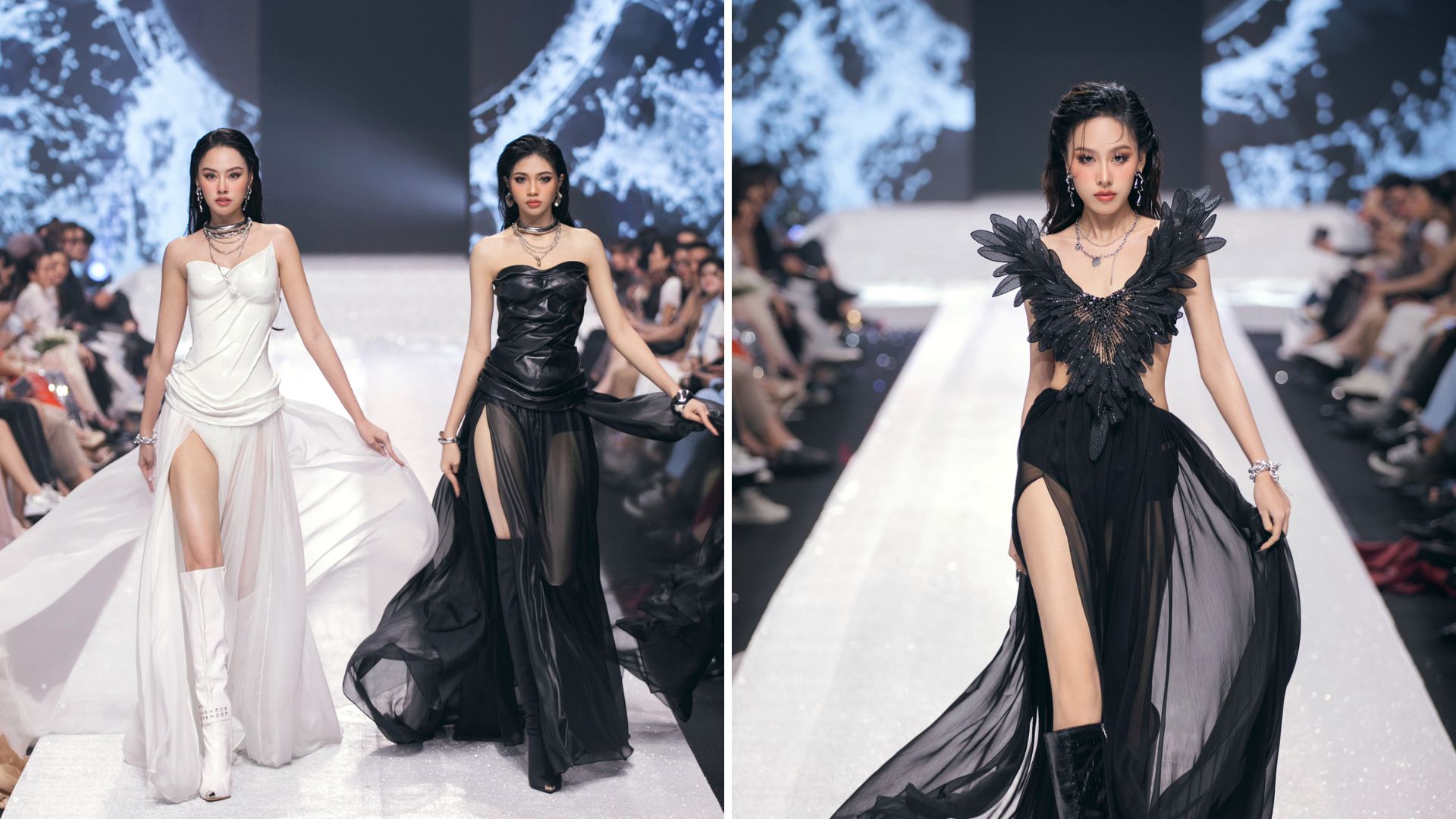 Người xem như lạc vào không gian thời gian đầy tinh tế với những mảng màu đa sắc. Màn trình diễn của loạt người mẫu, hoa hậu trong và ngoài nước tạo nên phần mở màn mãn nhãn và thu hút mạnh sự chú ý của người xem.