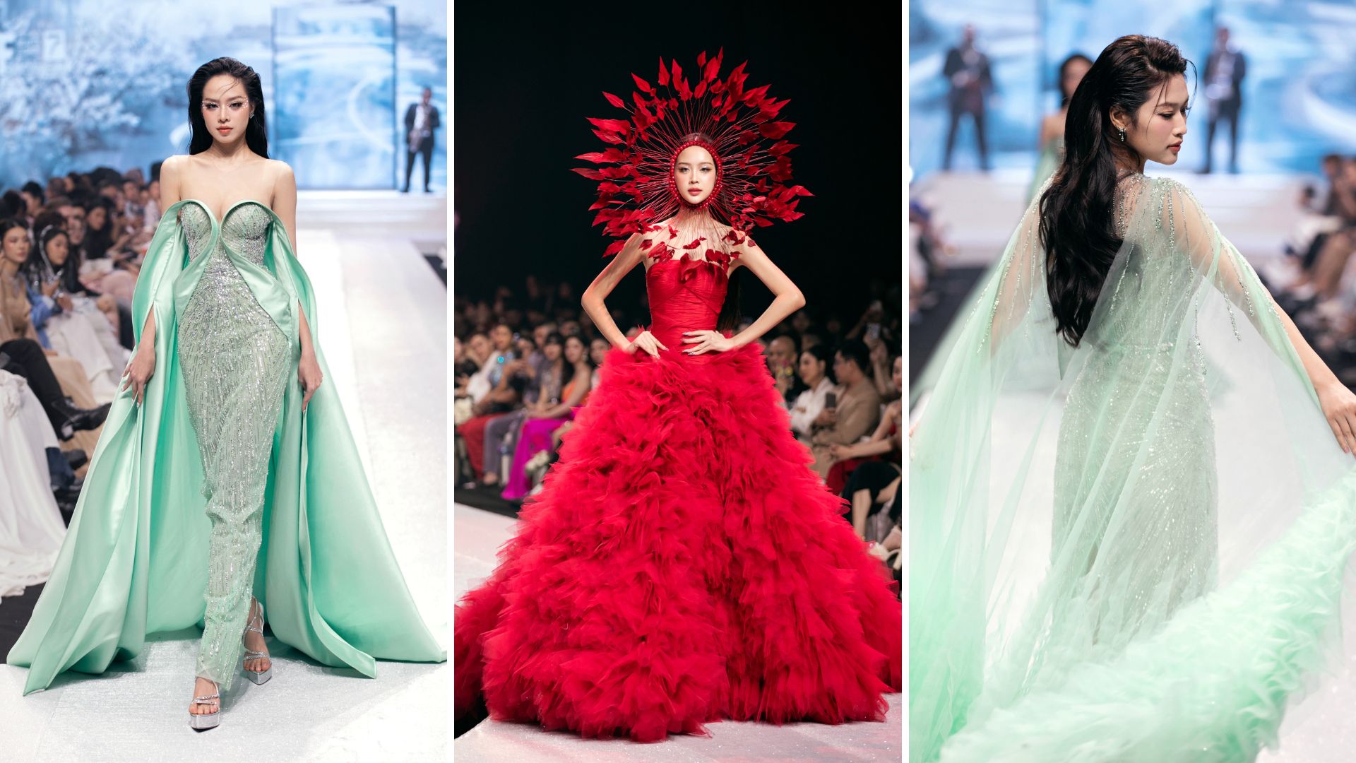 Thanh Thủy, Thiên Ân catwalk đôi mở màn show diễn; Bảo Ngọc kết màn ấn tượng với thiết kế đỏ rực