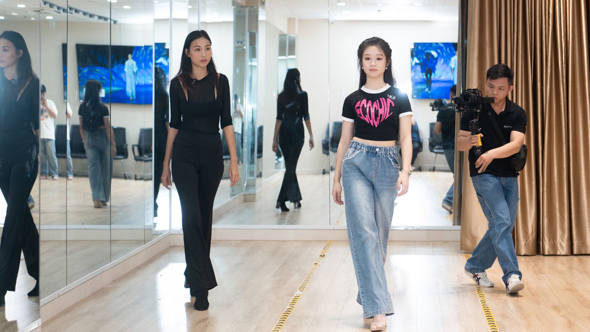 Hoa hậu Lê Hoàng Phương, Á hậu Tuyết Như cùng đảm nhận vai trò HLV catwalk đứng lớp cho Model Kids & Teen của Viện Đào tạo Sen Vàng.