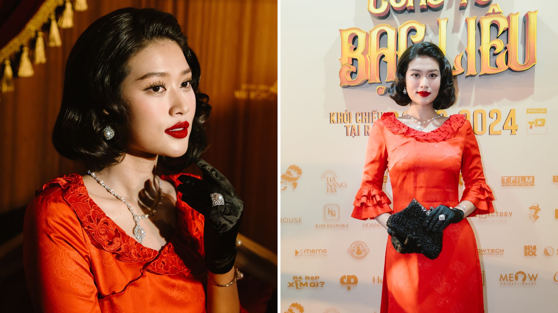 Kaity Nguyễn vào vai cô Sáu, em gái út được cưng chiều của cậu Ba Hơn (công tử Bạc Liêu). Cô lên đồ phong cách tiểu thư thập niên 1930, cùng Song Luân nhảy và hát tại họp báo phim ‘Công tử Bạc Liêu’, chiều 14/11.