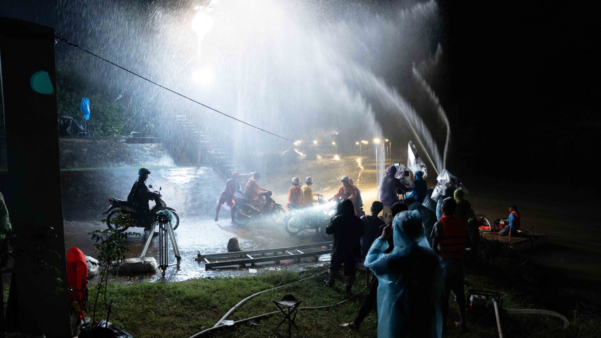 Đạo diễn Lý Hải tiết lộ thêm, trong quá trình dựng bối cảnh, nhiều lần đoàn phải ngừng thi công vì nước lũ bất ngờ đổ về, thậm chí có lần nước dâng cuốn trôi toàn bộ hệ thống đèn chiếu sáng đã chuẩn bị.