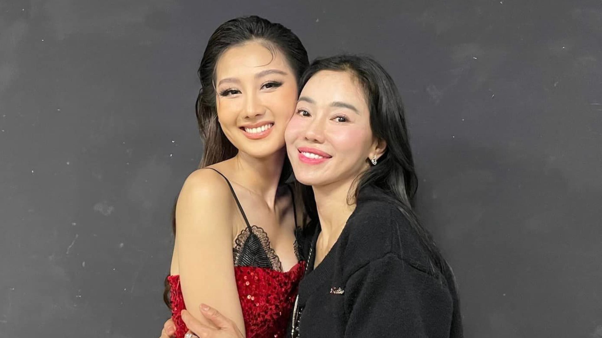Hoa hậu Quế Anh nhận được sự cổ vũ tinh thần từ mẹ và CEO Phạm Kim Dung trong đêm chung kết Miss Grand International 2024.
