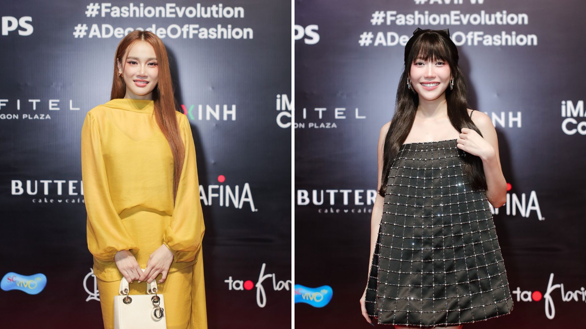Diễn viên Kaity Nguyễn khoe vẻ đẹp trong trẻo trong thiết kế cúp ngực đến từ thương hiệu CEM. Ca sĩ Trương Quỳnh Anh khoe đôi vai trần trong thiết kế yếm đỏ nổi bần bật được làm từ chất liệu sequin tỏa sáng tại thảm đỏ. Mỹ nhân Diệp Bảo Ngọc xuất hiện đầy quyến rũ trong bộ cánh xuyên thấu tone đen vô cùng huyền bí. Người đẹp hoàn thiện vẻ ngoài với mái tóc bob cao, trang điểm tone nude sang trọng và điểm xuyến trang sức lấp lánh tại thảm đỏ AVIFW.