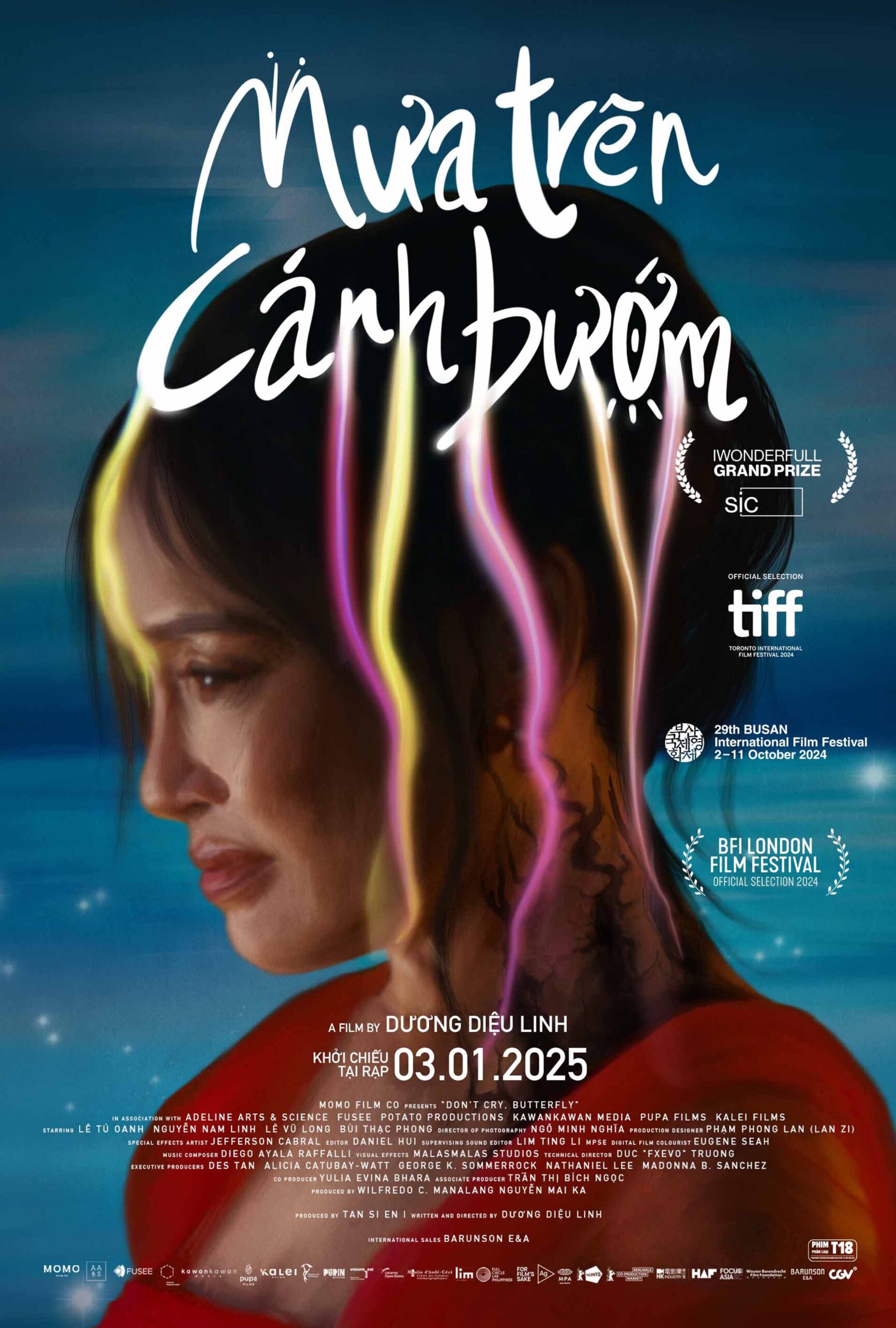 Tháng 9 vừa qua, phim điện ảnh Mưa Trên Cánh Bướm (tựa tiếng Anh: Don’t Cry, Buttefly) thu hút sự chú ý lớn từ giới truyền thông và cả những khán giả yêu điện ảnh khi chiến thắng 2 giải thưởng tại Liên hoan phim Venice lần thứ 81. Và sau rất nhiều sự chờ đợi, bộ phim đã chính thức ấn định lịch khởi chiếu tại Việt Nam vào ngày 3/1/2025. Như vậy, Mưa Trên Cánh Bướm chính thức trở thành tác phẩm “khai màn” cho năm 2025 tràn đầy hứa hẹn của điện ảnh Việt Nam.
