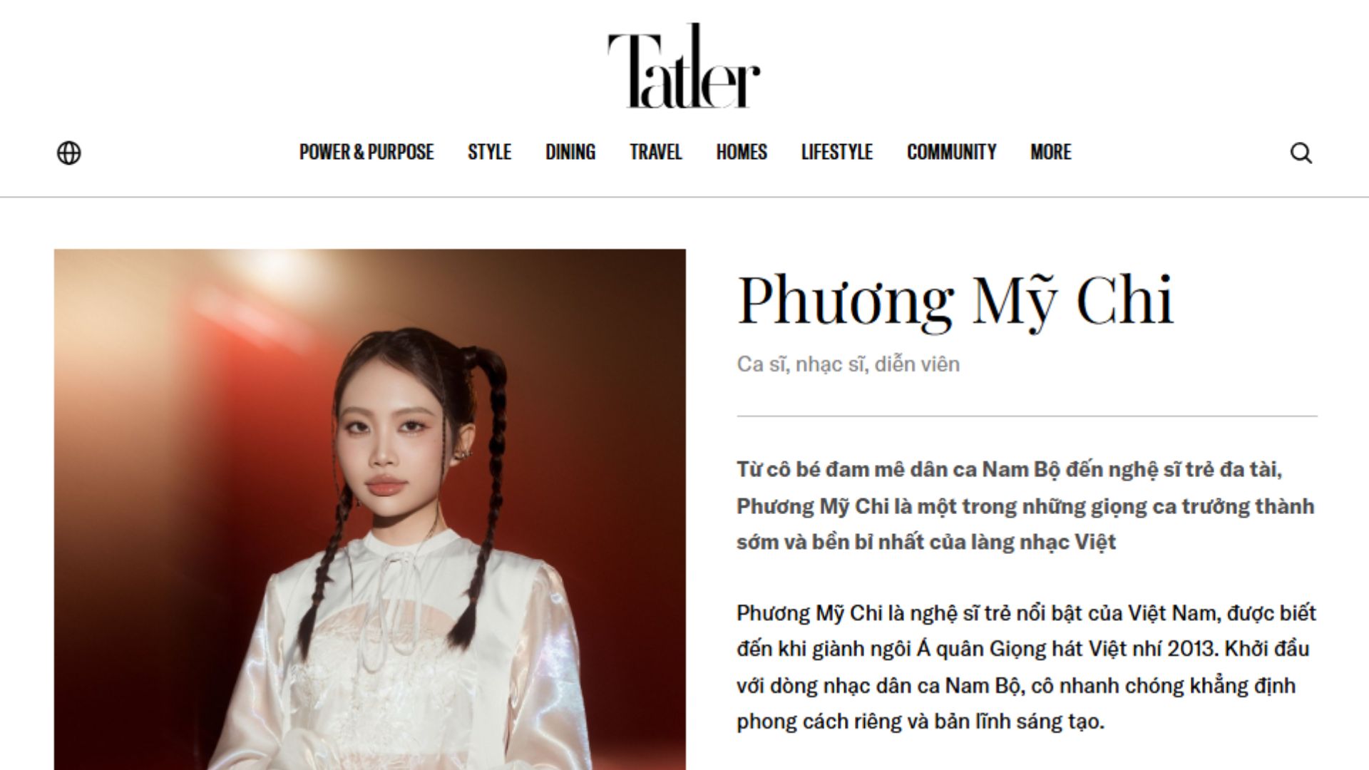 Sau màn tái debut với album Vũ Trụ Cò Bay vào năm 2023, Phương Mỹ Chi gây tiếng vang với hình ảnh mới mẻ, mang đậm tinh thần dân tộc trong những sản phẩm âm nhạc được làm mới một cách sáng tạo. Cô từng bước trở thành cầu nối vững chắc giữa các giá trị truyền thống và thế hệ trẻ hiện nay, một hành trình vừa can đảm vừa bền bỉ, thể hiện rõ tinh thần mà Tatler tìm kiếm.
